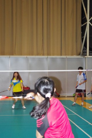 7月10日晚上八点,羽毛球个人赛在大学城体育中心羽毛球馆举行。比赛共有42名选手报名参加:29名男单选手和13名女单选手;比赛采用三局两胜制的淘汰赛;半决赛和决赛采用二十一分制,其他比赛采用十五分制。